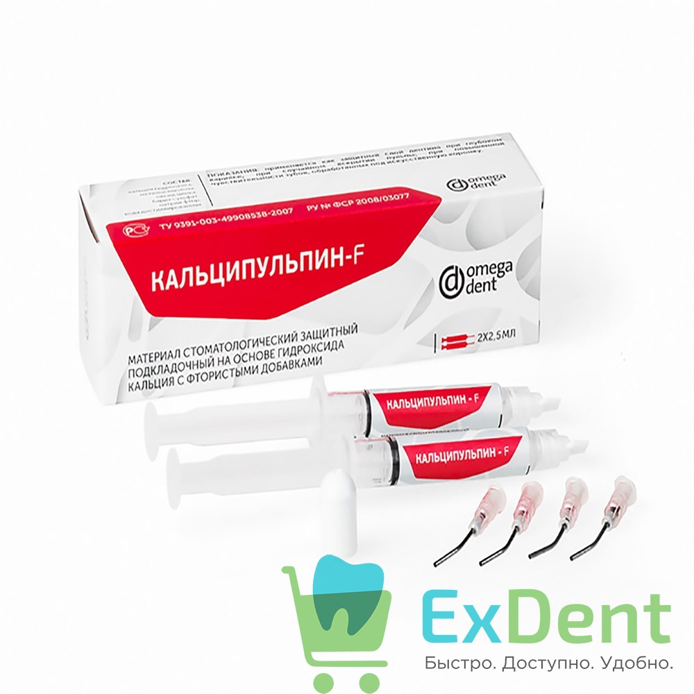 Купить Кальципульпин F - защитная подкладка на основе гидроксида кальция с фторидом натрия (2 х 2,5 г) произведенный компанией ОМЕГА-ДЕНТ вы можете в ExDent.ru по цене 360руб.