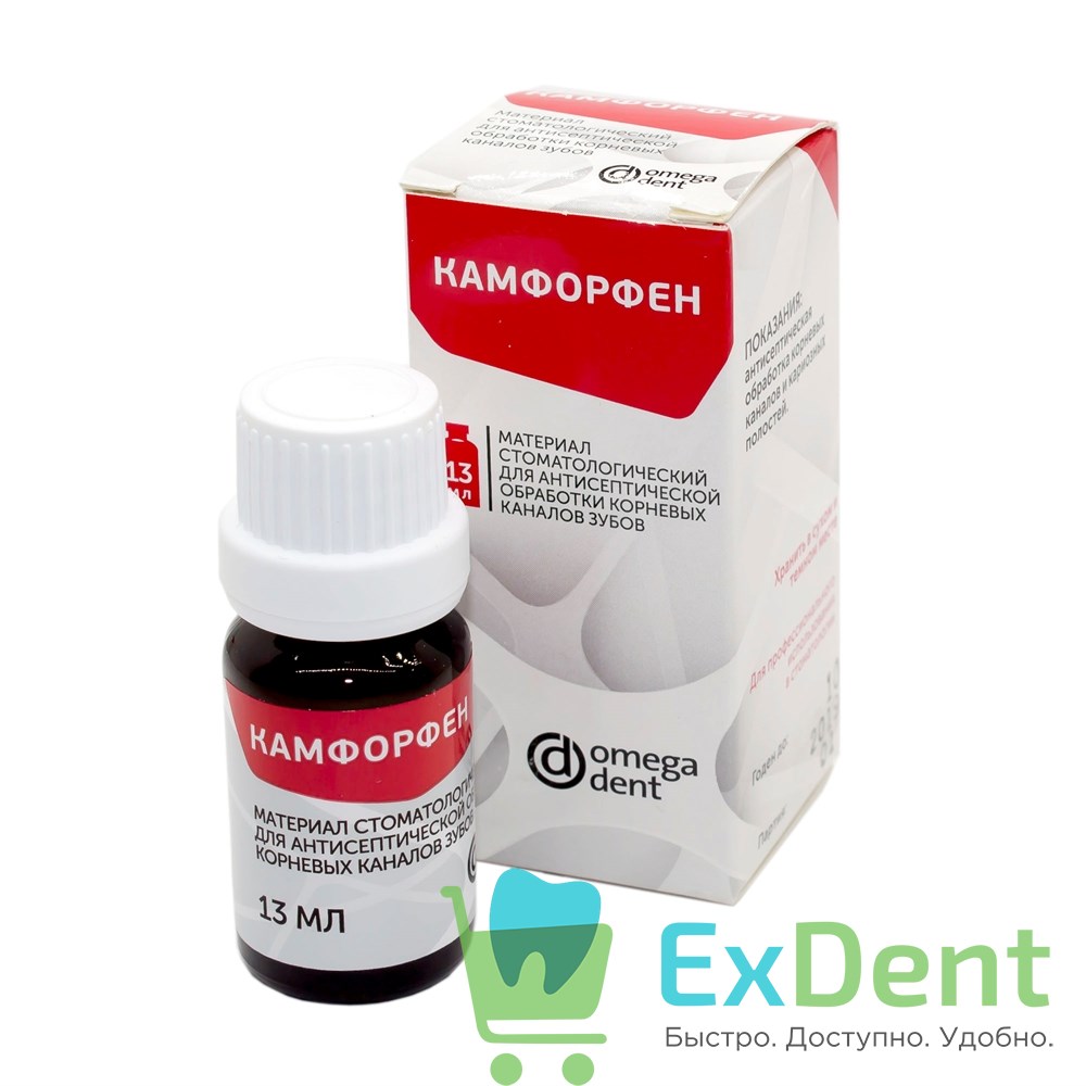 Купить Камфорфен - жидкость для антисептической обработки корневых каналов (13 мл) произведенный компанией ОМЕГА-ДЕНТ вы можете в ExDent.ru по цене 405руб.