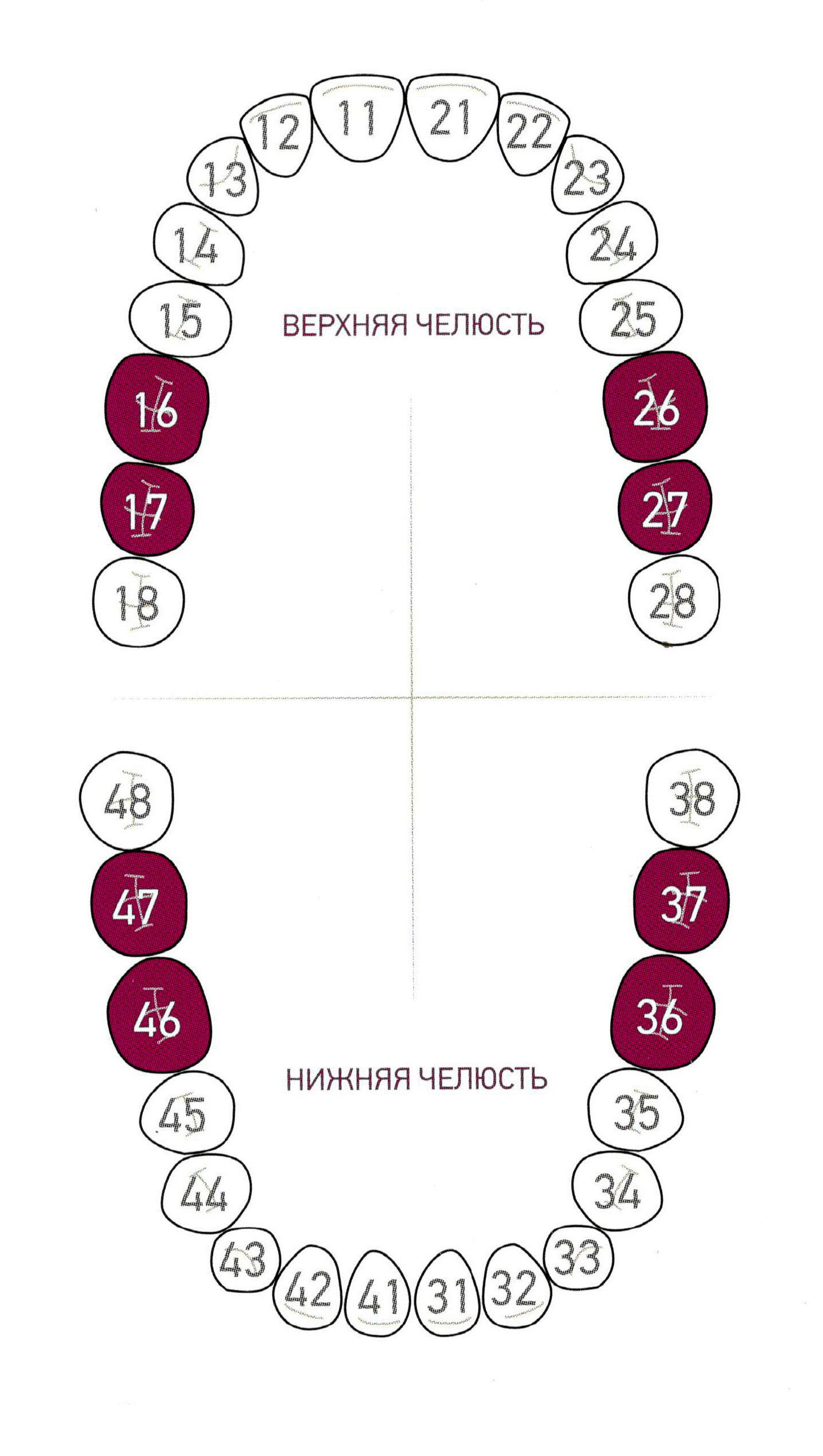№14А. Кламп для частично прорезавшихся моляров верхней и нижней челюсти, а также для зубов, имеющих значительное разрушение коронковой части или полностью разрушенную мезиальную стенку. В отличие от клампа №14 имеет широкие щечки.
