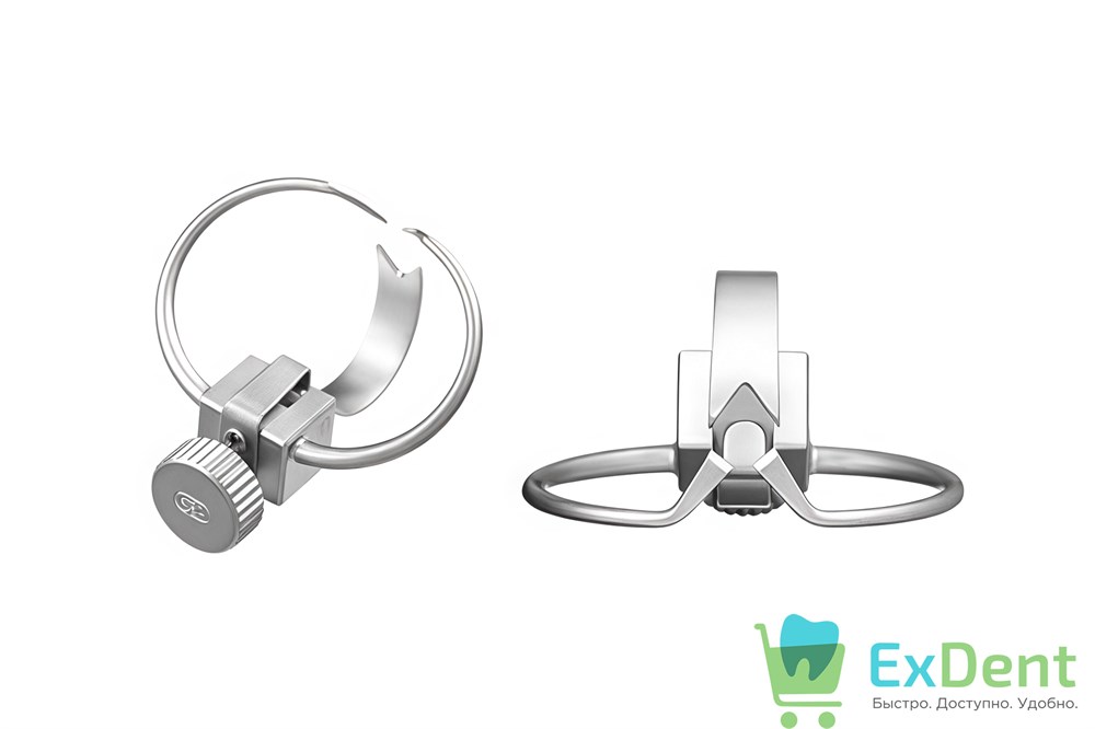 Специализированный кламп, предназначенный для надежной ретракции и фиксации края латексного коффердама в области вестибулярной поверхности шейки зуба при работе с пришеечными полостями V класса по Блэку.