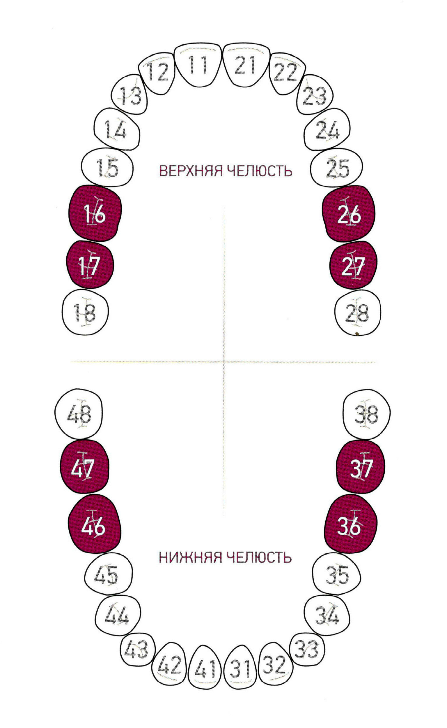№28. Кламп для моляров верхней и нижней челюсти. Крылья отсутствуют, увеличенные щечки вогнуты в апикальном направлении. Идеален как якорный кламп на зубы с большой коронковой частью.