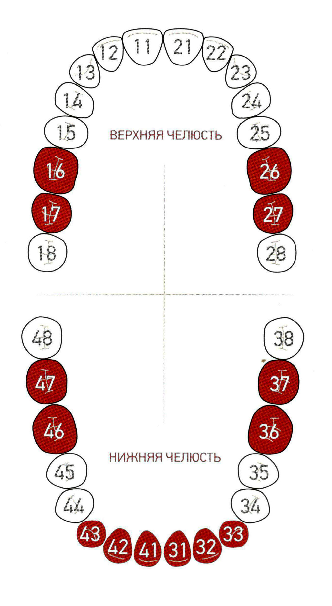Кламп для моляров верхней и нижней челюсти, с диаметром и щечками среднего размера. Имеет выраженную вогнутость щечек и горизонтально расположенные малые крылья.