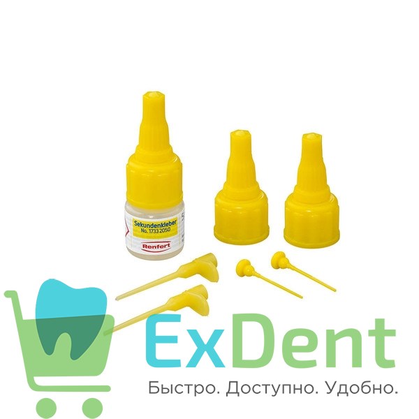 Сильнодействующий секундный клей Renfert используется для гипса, металла, пластмассы и керамики.
