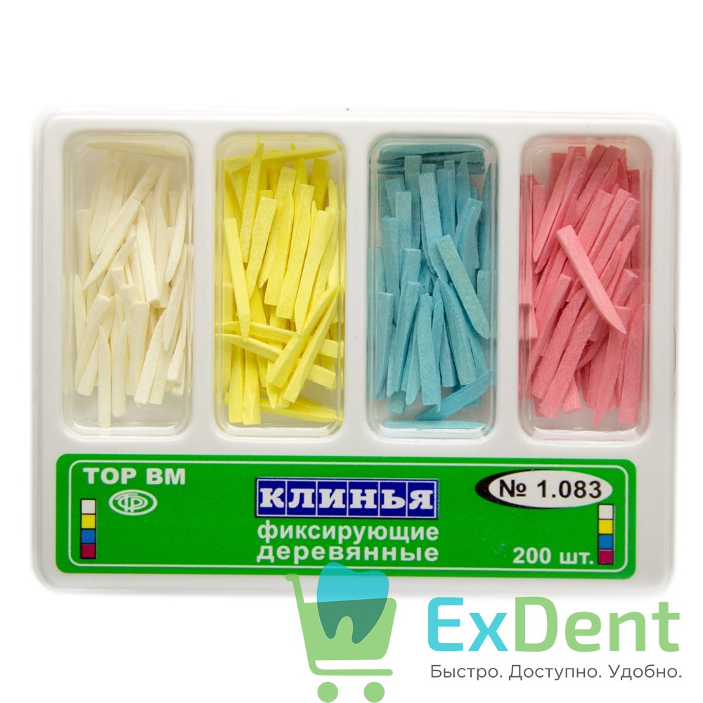 Купить Клинья фиксирующие деревянные набор, 4-х типов (200 шт) произведенный компанией ТОР ВМ вы можете в ExDent.ru по цене 290руб.