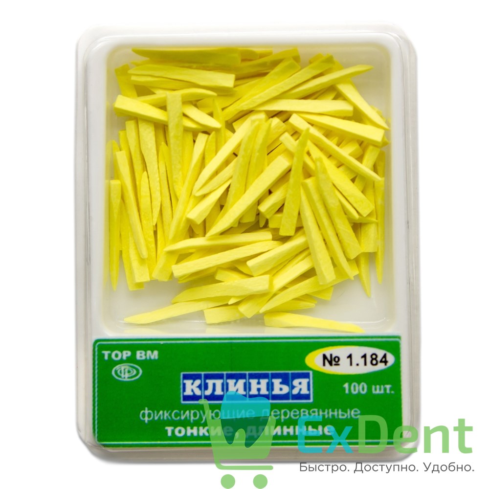 Купить Клинья фиксирующие деревянные тонкие, длинные, желтые (100 шт) произведенный компанией ТОР ВМ вы можете в ExDent.ru по цене 130руб.