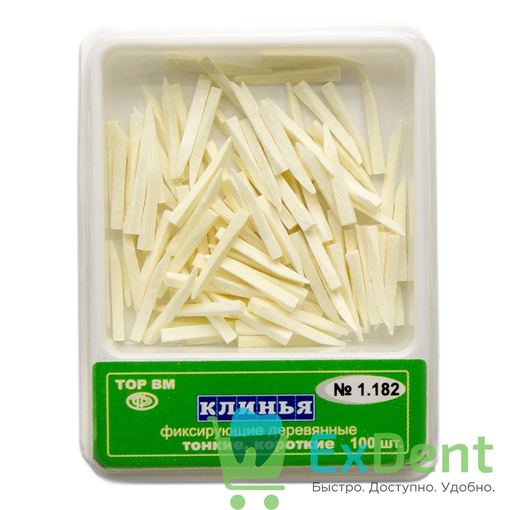 Купить Клинья фиксирующие деревянные тонкие, короткие, белые (100 шт) произведенный компанией ТОР ВМ вы можете в ExDent.ru по цене 140руб.