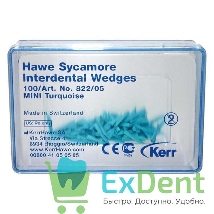 Купить Клинья Sycamore Interdental Wedges - деревянные из платана, межзубные, мини, бирюзовые (100 шт) произведенный компанией Kerr вы можете в ExDent.ru по цене 0руб.