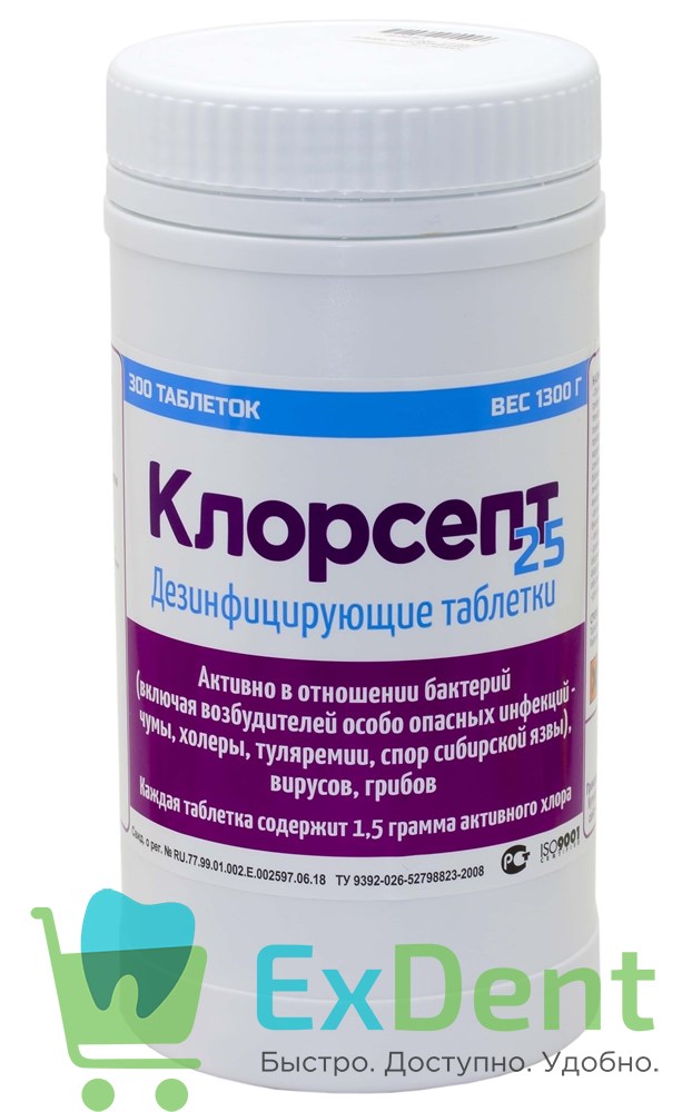 Купить Клорсепт 25 - дезинфицирующие таблетки (300 шт, 1300 г) произведенный компанией Самарово вы можете в ExDent.ru по цене 0руб.
