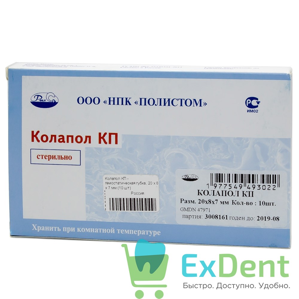 - Колапол КП Гемостатический стерильно (20 х 8 х 7) 10 шт - при повышенной кровоточивости (после удаления зуба, кюретажа десневых карманов, дентальной имплантации и др. хирургических манипуляций)