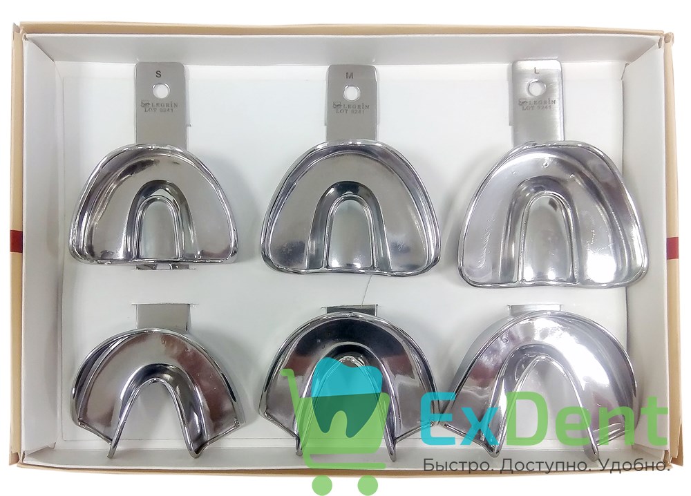 Купить Ложка для слепков неперфорированная набор (3 верх+3 низ) S, M, L произведенный компанией Legrin вы можете в ExDent.ru по цене 1 560руб.