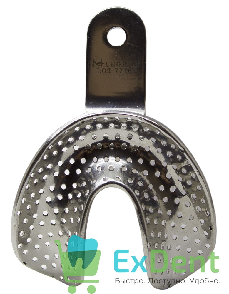 Купить Ложка стальная перфорированная, M низ, для беззубых Legrin произведенный компанией Legrin вы можете в ExDent.ru по цене 380руб.