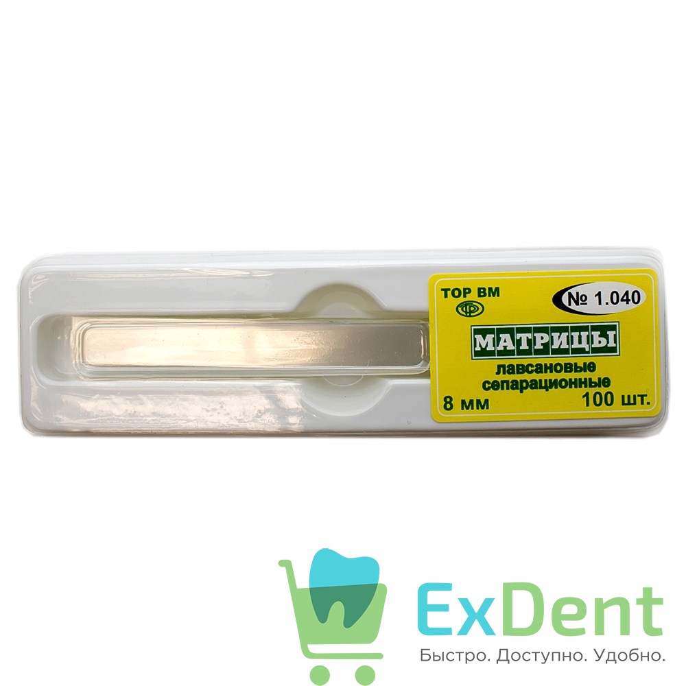 Купить Матрицы лавсановые сепарационные ширина 8 мм (100 шт) произведенный компанией ТОР ВМ вы можете в ExDent.ru по цене 60руб.
