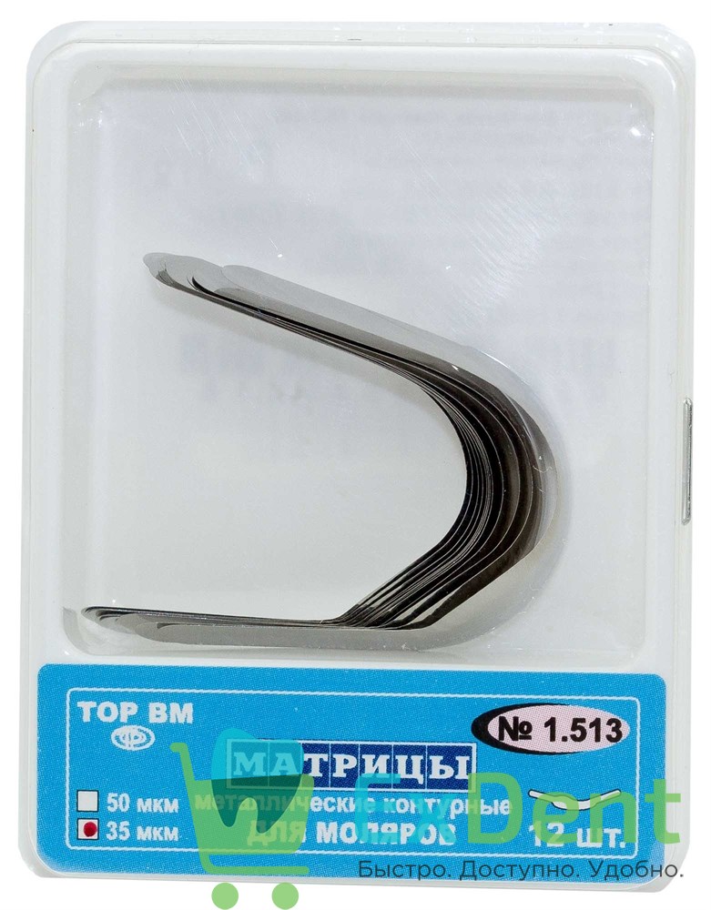 Купить Матрицы метал. контурные для моляров, выступ слева (35 мкм, 12 шт) произведенный компанией ТОР ВМ вы можете в ExDent.ru по цене 0руб.
