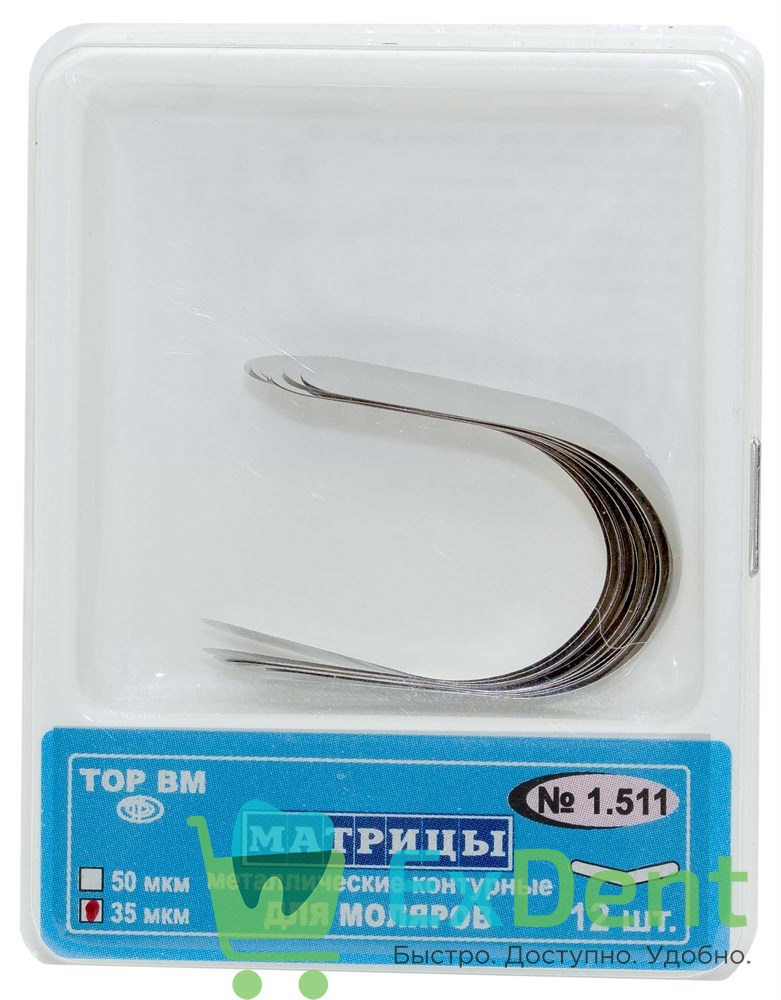 Купить Матрицы металлические контурные для моляров, без выступа, высота 7 мм, 35 мкм (12 шт) произведенный компанией ТОР ВМ вы можете в ExDent.ru по цене 225руб.