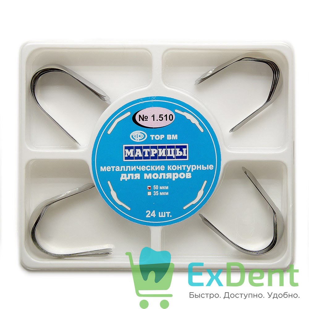 Купить Матрицы металлические контурные для моляров, набор 4 формы, (50 мкм х 24 шт) произведенный компанией ТОР ВМ вы можете в ExDent.ru по цене 350руб.