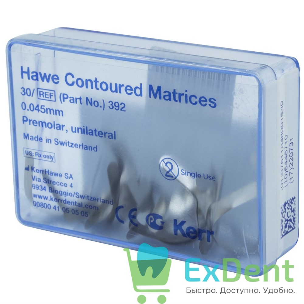 Купить Матрицы металлические контурные для премоляров односторонние (толщина 0,045 мм х 30 шт) произведенный компанией Kerr вы можете в ExDent.ru по цене 0руб.