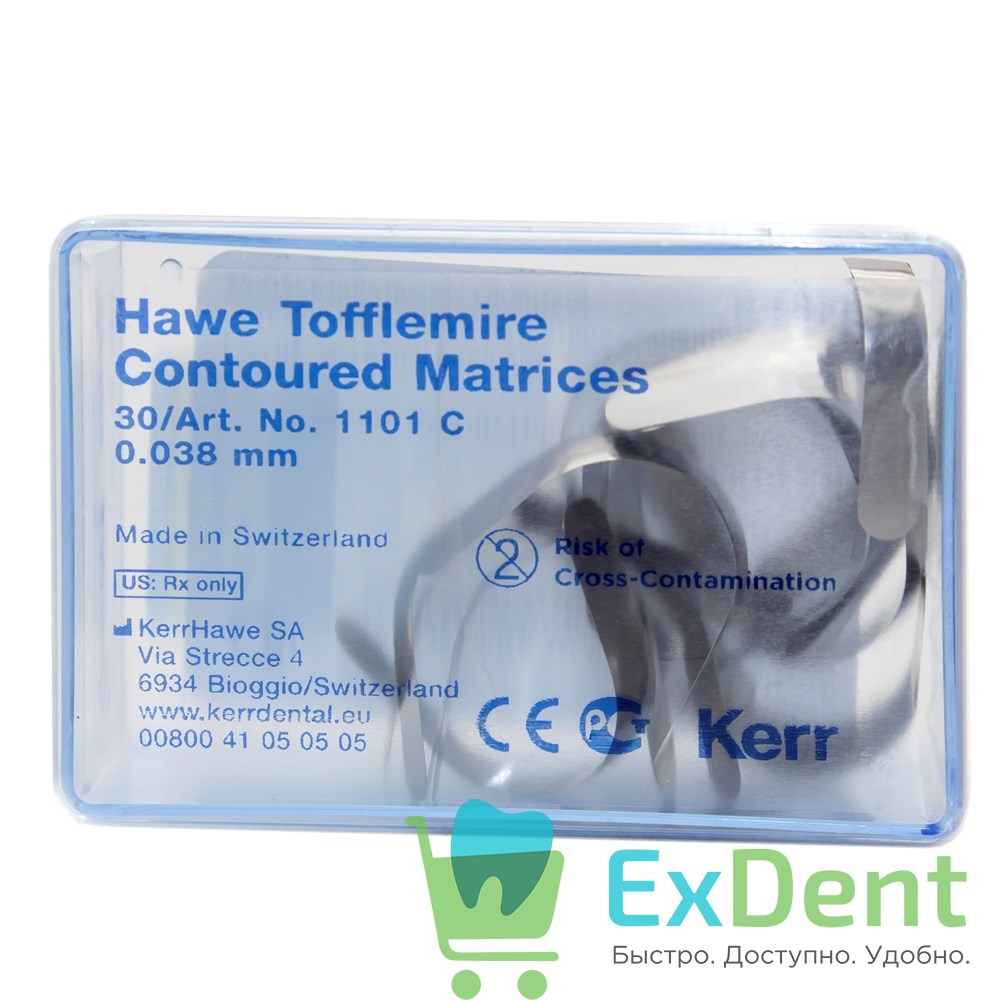 Купить Матрицы металлические контурные Tofflemire выпуклые изогнутые по экватору (толщина 0.038 мм х 30 шт) произведенный компанией Kerr вы можете в ExDent.ru по цене 0руб.