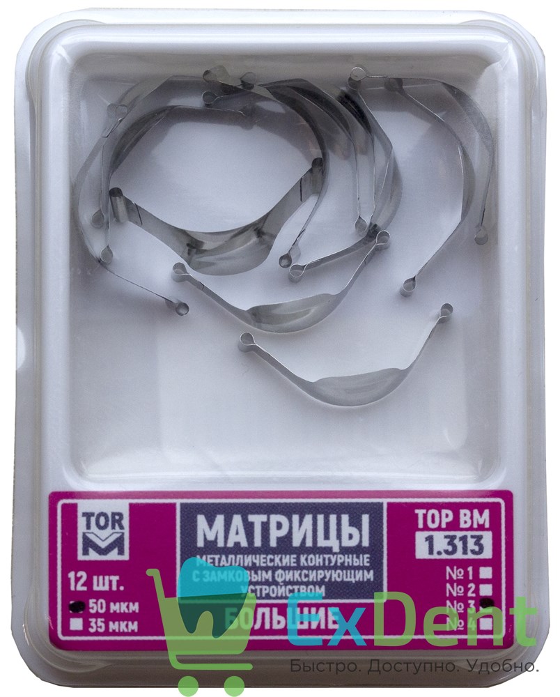 Купить Матрицы металлические контурные замковые с фиксирующим устройством, большие ф.3 (50 мкм х 12 шт) произведенный компанией вы можете в ExDent.ru по цене 0руб.