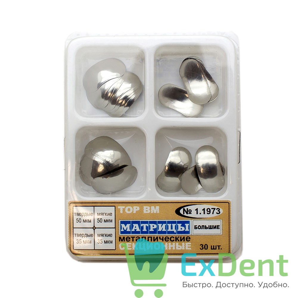 Купить Матрицы металлические секционные, большие, набор 4-х типов (30 шт) произведенный компанией ТОР ВМ вы можете в ExDent.ru по цене 370руб.