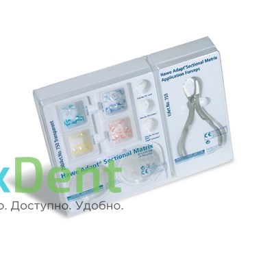 Матрицы секционные Blue Adapt Sectional Matrix, набор 200 шт. (4 вида по 50 шт), 200 апроксимальных формочек, 1 хирургические щипцы, клинья Adapt Luciwedge (по 5 шт малых, средних и больших)