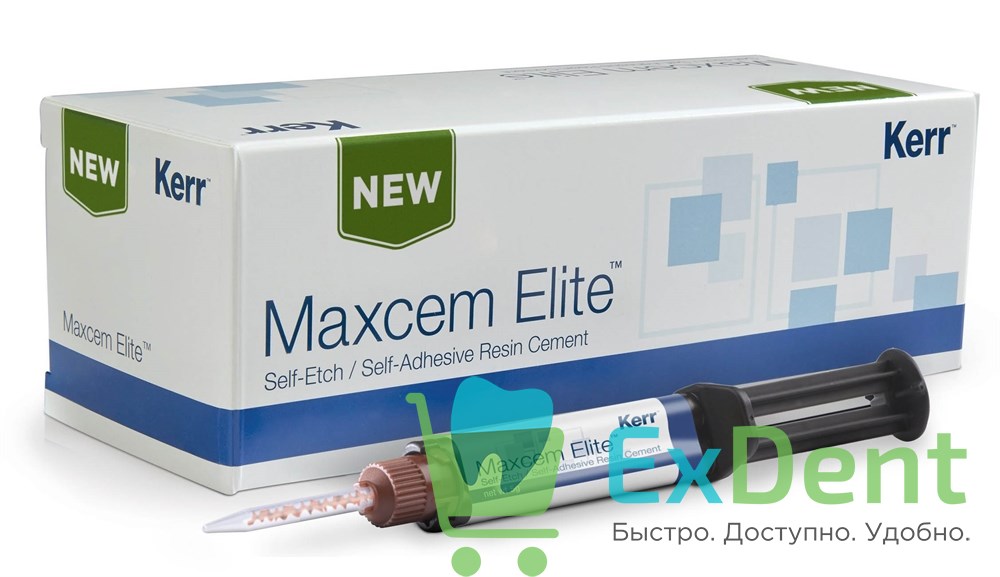 Купить Maxcem (Максцем) Elite прозрачный - цемент двойного отверждения для фиксации (1 х 5 г) произведенный компанией Kerr вы можете в ExDent.ru по цене 4 400руб.