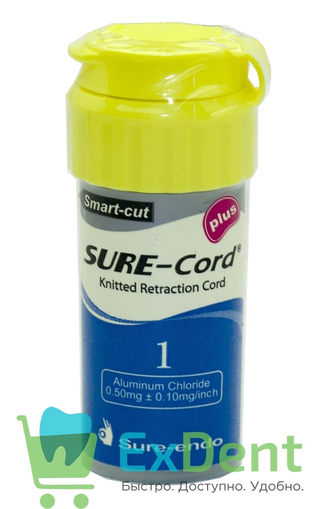 Купить Нить ретракционная №1 SURE-CORD ПЛЮС, с пропиткой алюминия, из микрофибры (2,54 м) произведенный компанией Sure-endo вы можете в ExDent.ru по цене 0руб.