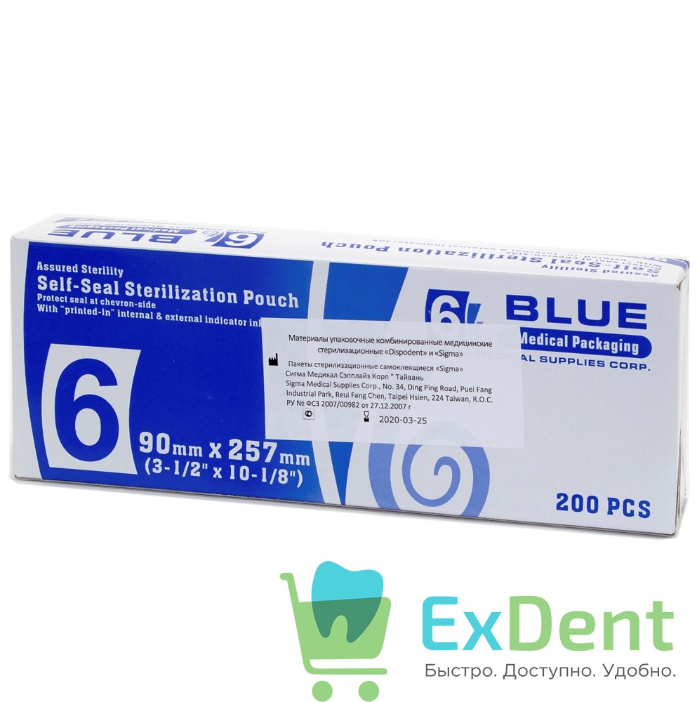 Пакеты для стерилизации Sigma, 90 х 257 мм, самозапечатывающиеся (200 шт)