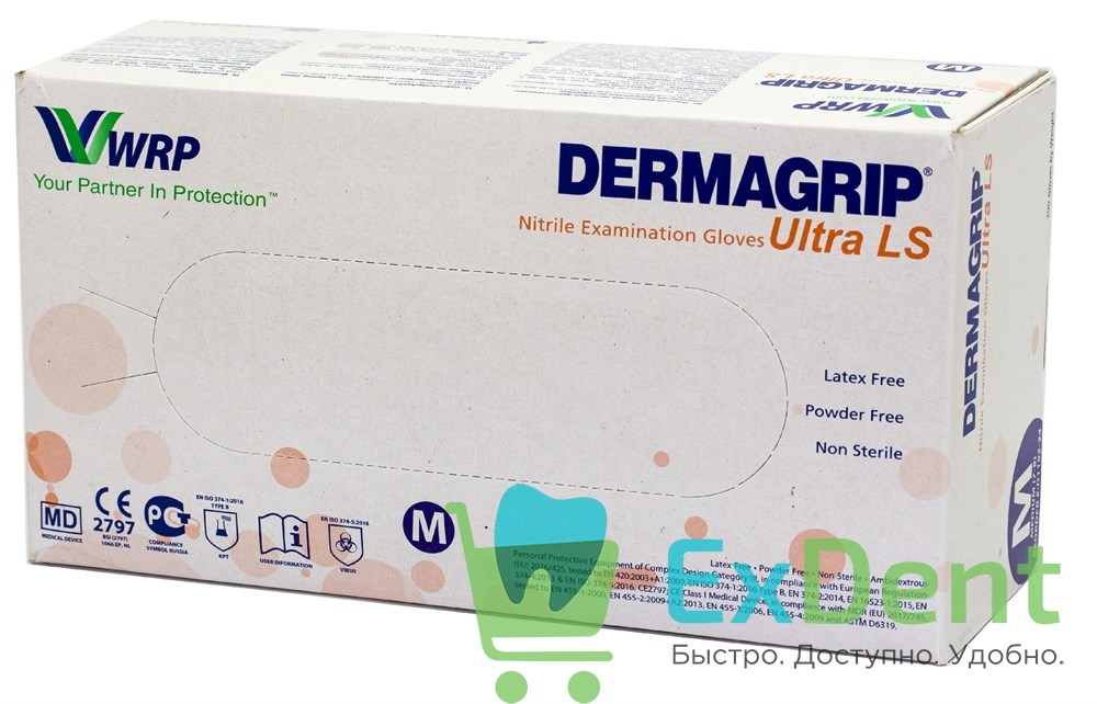 Медицинские перчатки Dermagrip Nitrile Ultra LS торговой марки WRP (Малайзия) - это нитриловые неопудренные нестерильные перчатки с текстурированной поверхностью пальцев. Не содержат протеины натурального латекса. Перчатки Дермагрип Ультра ЛС стойкие к антисептикам, гипоаллергенные, обеспечивают высокую тактильную чувствительность и отличную барьерную защиту от химикатов и различных жидкостей.