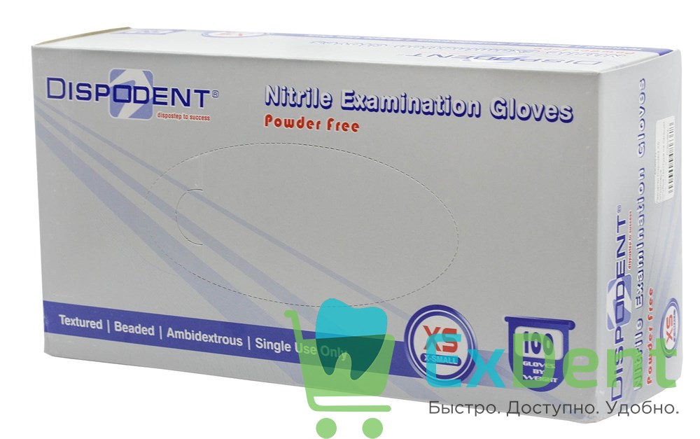 Купить Перчатки Dispodent XS, нитриловые голубые,текстура на пальцах неопудренные, нестерильные (100 шт) произведенный компанией Dispodent вы можете в ExDent.ru по цене 0руб.