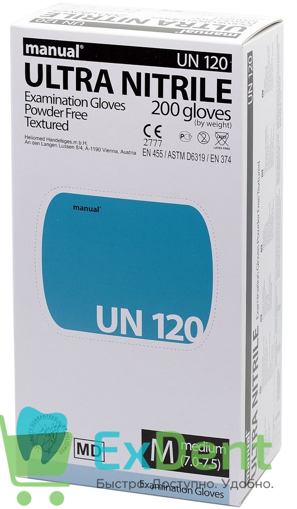Купить Перчатки Manual M нитриловые, неопудренные, гипоаллергенные (200 шт) произведенный компанией Heliomed вы можете в ExDent.ru по цене 0руб.