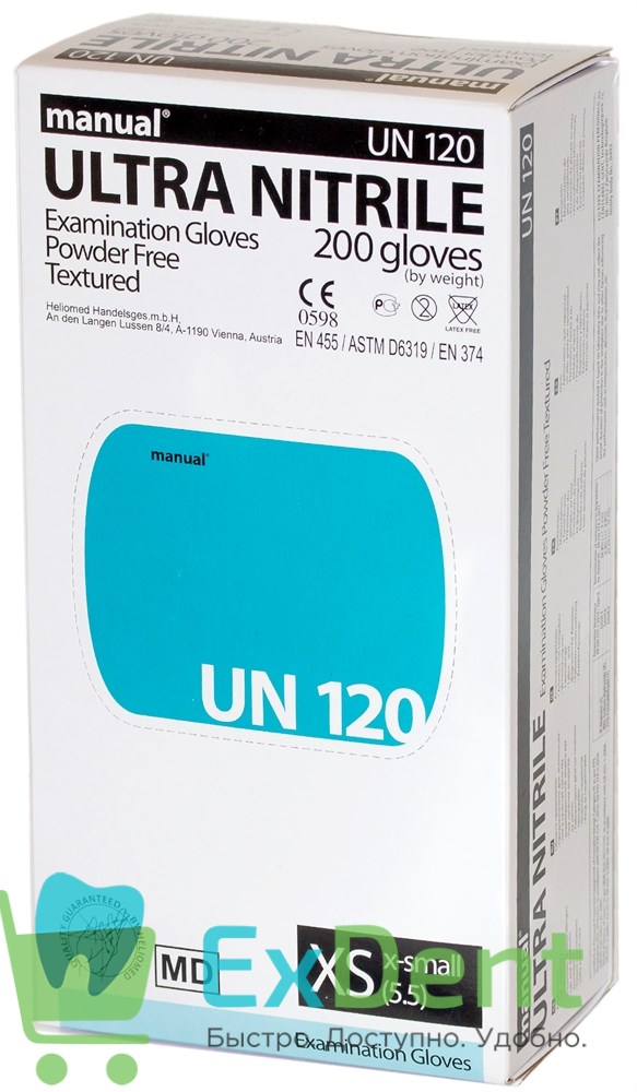 Купить Перчатки Manual XS нитриловые, неопудренные, гипоаллергенные (200 шт) произведенный компанией Heliomed вы можете в ExDent.ru по цене 0руб.