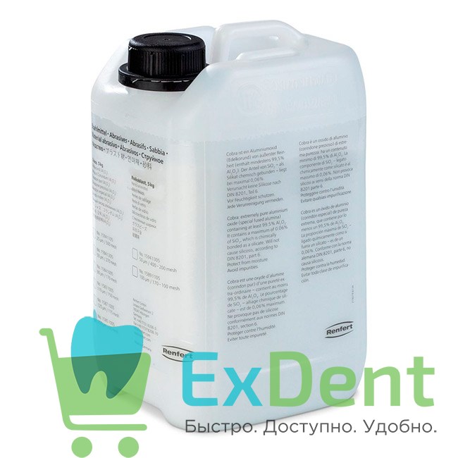 Песок Renfert Cobra (Кобра) представляет собой струйный материал, который состоит из одного из самых твердых материалов: оксида алюминия (Al2O3).