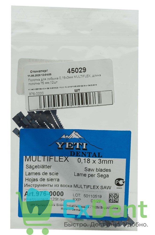 Купить Пилка к лобзику (0,18 х 3 мм) (12 шт) произведенный компанией Yeti вы можете в ExDent.ru по цене 0руб.