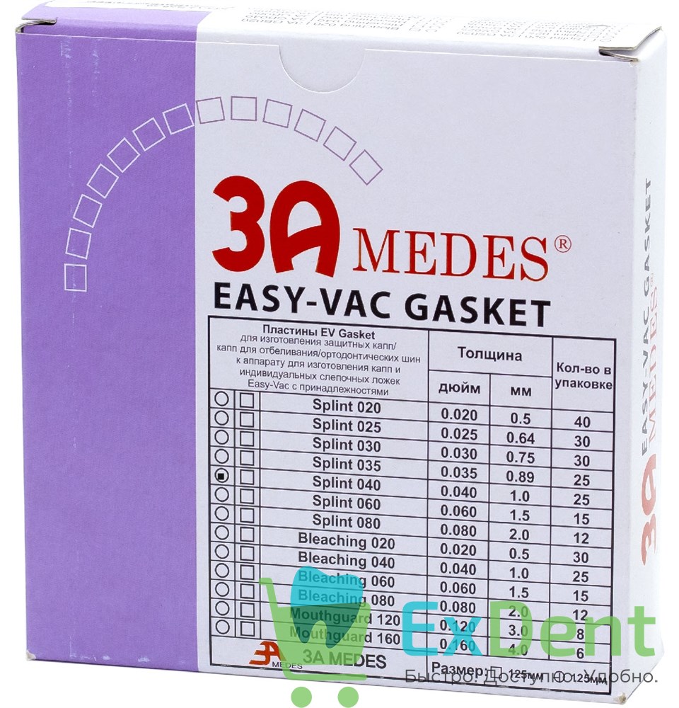 - Вакуумформеры Easy-Vac, оснащенные шумопоглотителем, теплоизолятором, таймером и предохранителем. Используются для изготовления индивидуальных ложек, пластин и капп требуемой толщины и твердости.