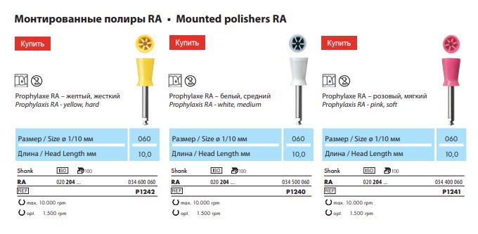 Полировщики ProfiLax3 предназначены для однократного Применения и поэтому не могут использоваться повторно.