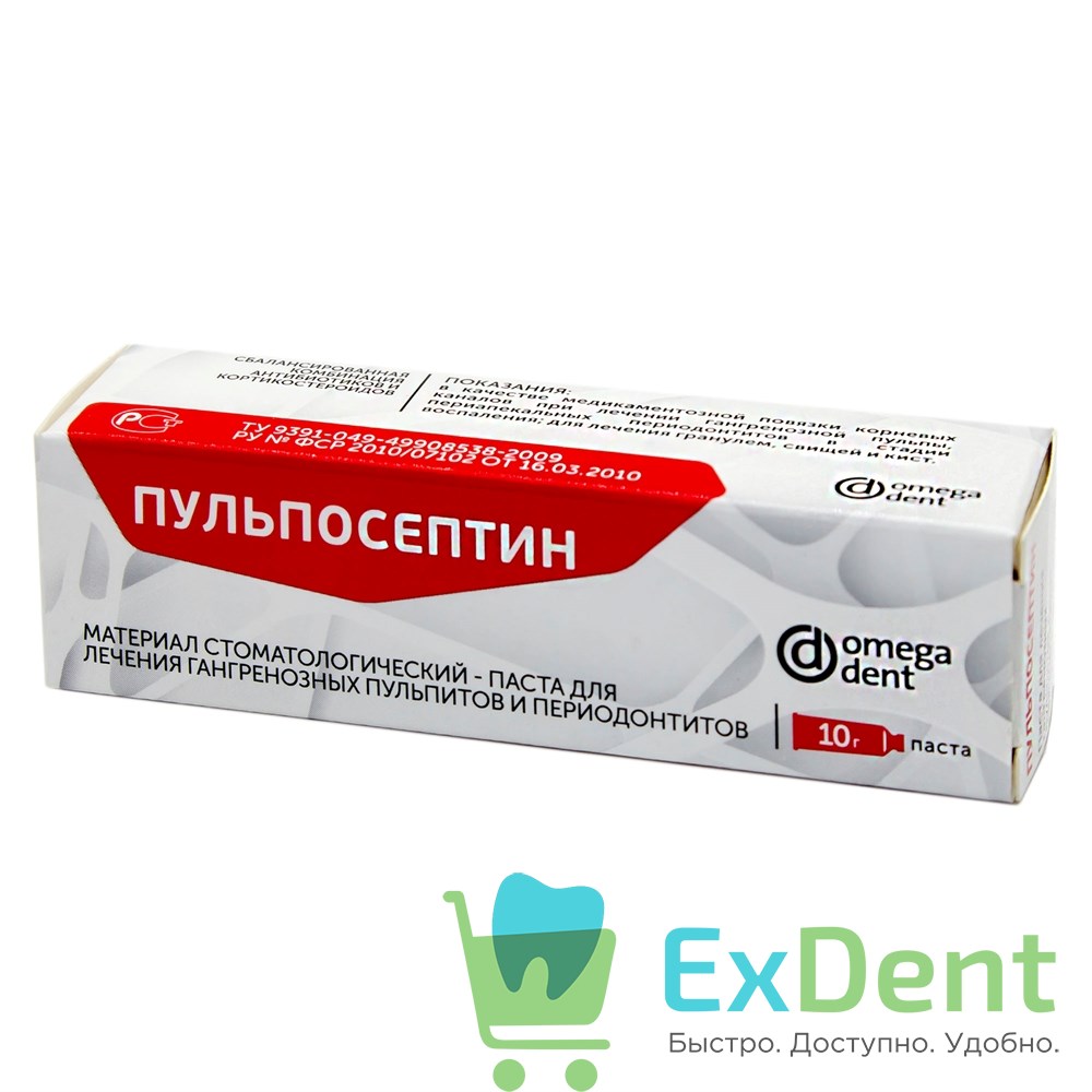 Купить Пульпосептин - паста для лечения гангренозных пульпитов и периодонтитов (10 г) произведенный компанией ОМЕГА-ДЕНТ вы можете в ExDent.ru по цене 1 830руб.