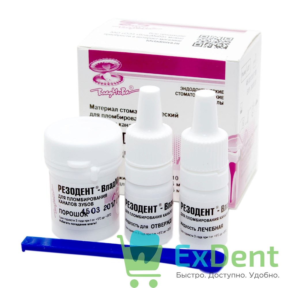 Купить Резодент - для пломбирования корневых каналов (10 г + 5 мл + 5 мл) произведенный компанией ВладМиВа вы можете в ExDent.ru по цене 280руб.