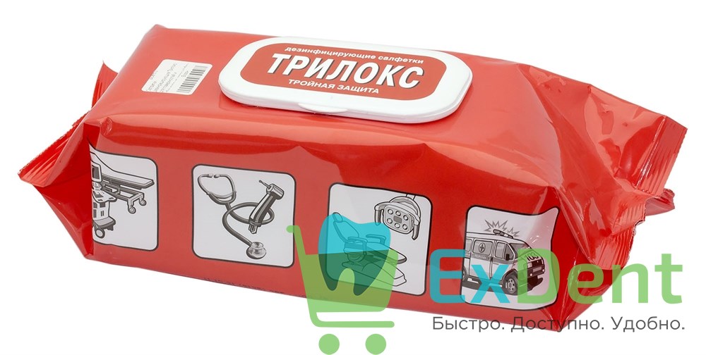 Купить Салфетки дезинфецирующие Трилокс, для поверхностей и оборудования, мягкая упаковка (120 шт) произведенный компанией Бозон вы можете в ExDent.ru по цене 560руб.