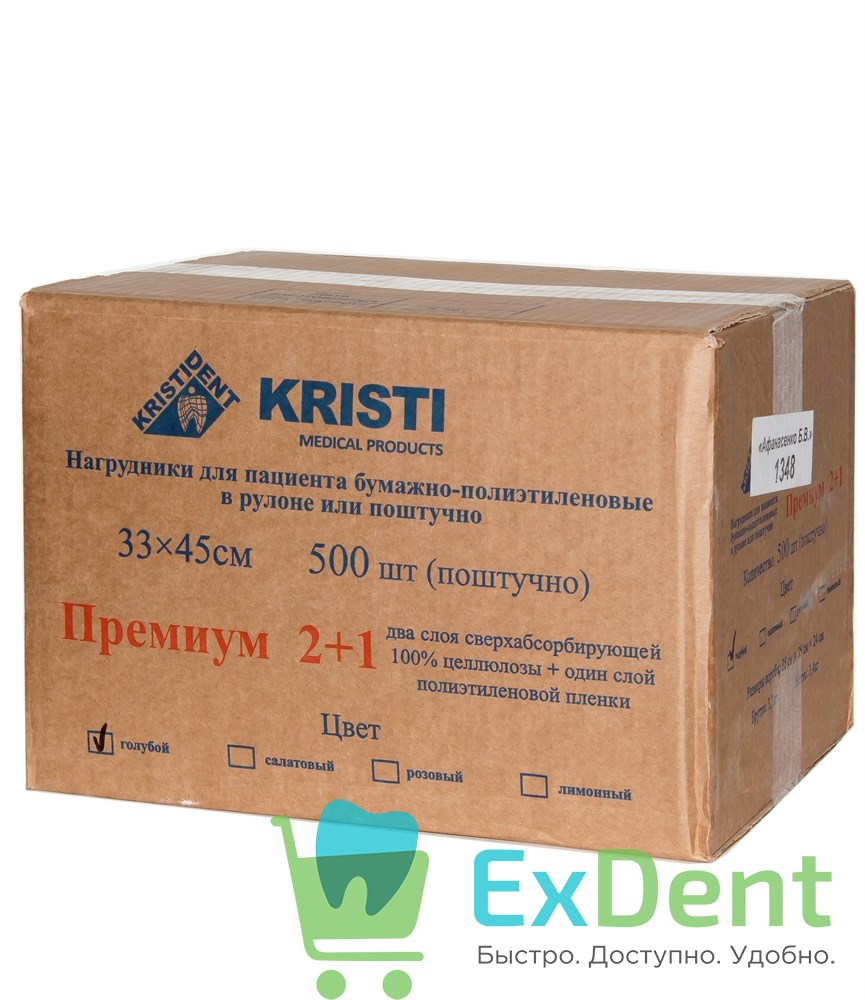 Купить Салфетки для пациентов голубые 3-х слойные, KRISTI ПРЕМИУМ 33 х 45 см (500 шт) произведенный компанией вы можете в ExDent.ru по цене 0руб.