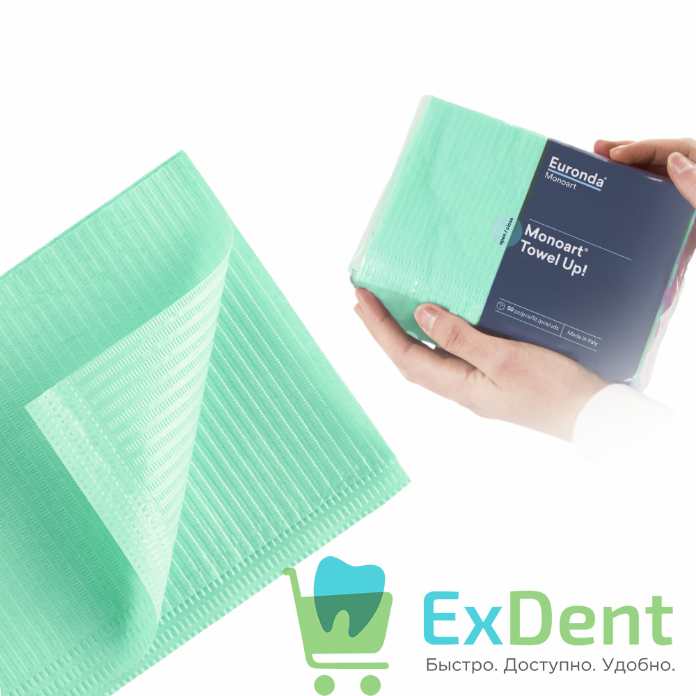 Купить Салфетки для пациентов зеленые 2-х слойные, Basic Monoart 33 х 45 см (500 шт) произведенный компанией Euronda вы можете в ExDent.ru по цене 1 040руб.