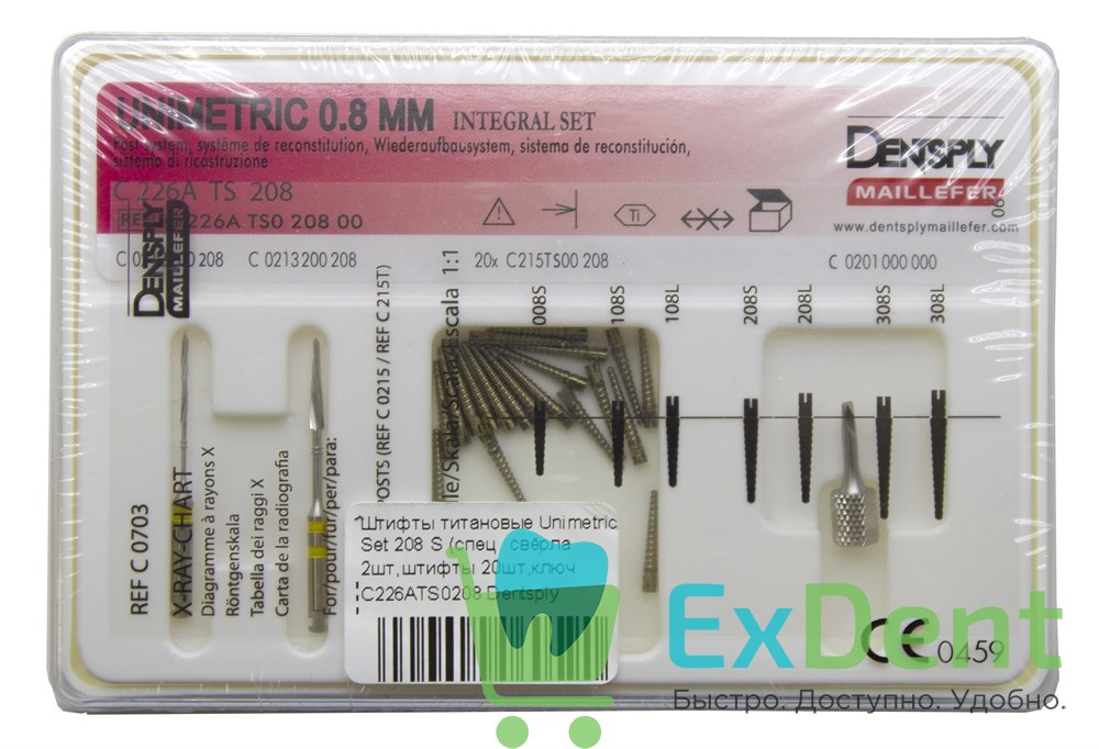 Купить Штифты титановые Unimetric Set 208 S (спец. свёрла 2шт,штифты 20шт,ключ 1шт.) произведенный компанией Dentsply вы можете в ExDent.ru по цене 2 430руб.