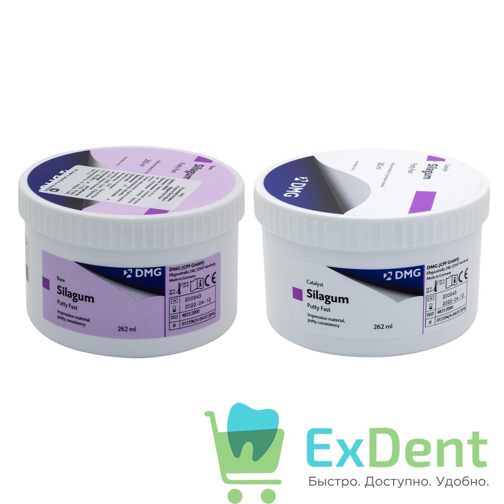 Купить Silagum (Силагум) Putty Fast - А- силикон, основа + катализатор (2 х 262 мл) произведенный компанией DMG вы можете в ExDent.ru по цене 5 200руб.