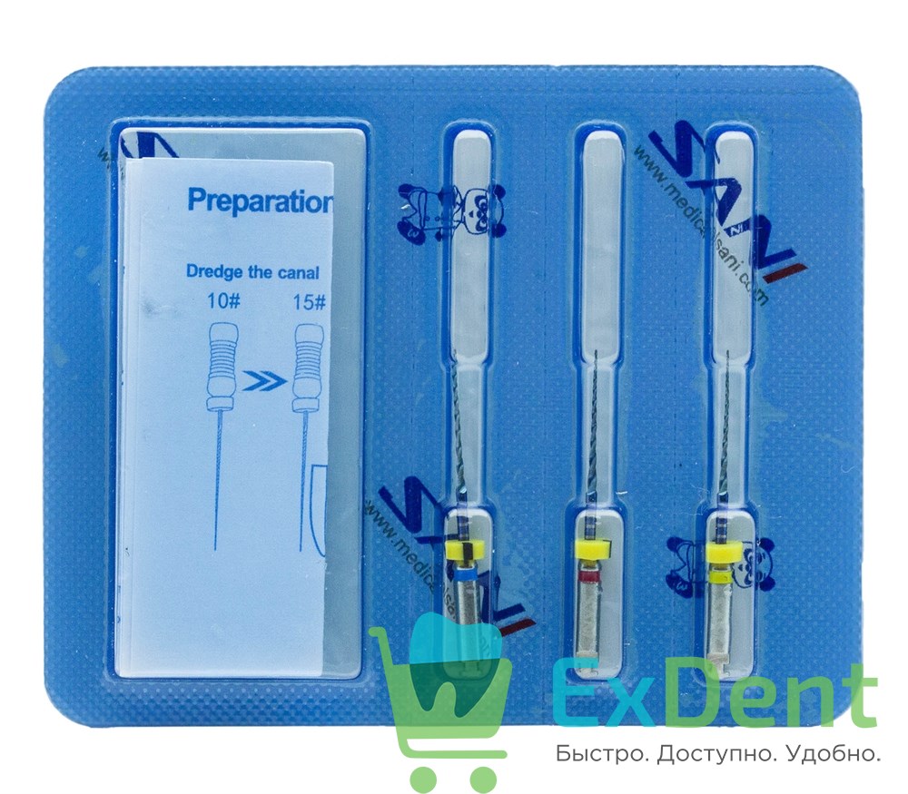 - Файлы изготовлены из никель-титанового сплава (NiTi) и полностью безопасны для клинического применения.