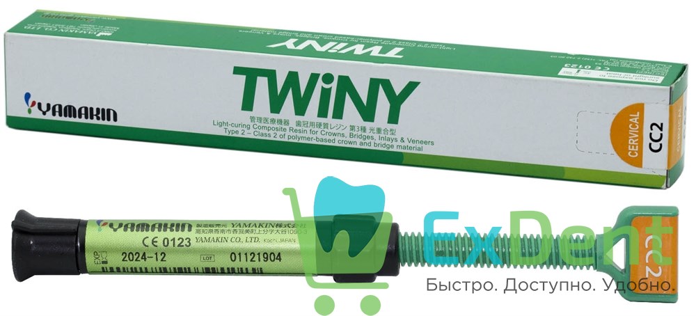 Пришеечная масса - используется для выражения натурального эффекта пришеечной области реставрации, совпадает с базовыми цветовыми оттенками, 2.6мл,TWiNY, Yamakin (Япония). Материал для выражения натурального эффекта пришеечной области реставрации. Пришеечная масса TWiNY имеет 8 оттенков. Время световой полимеризации зависит от типа полимеризатора - более подробно смотрите в каталоге TWiNY, в начале раздела.