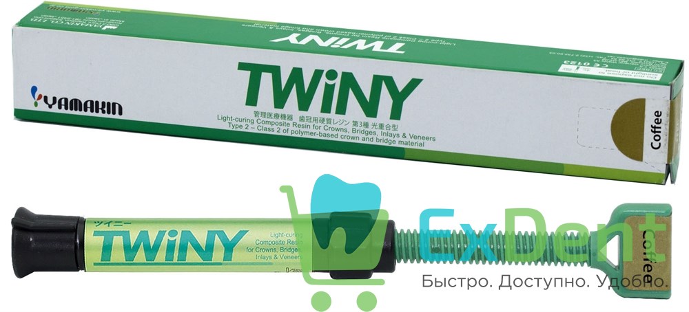 TWiNY - это свето и тепло отверждаемый, керама-кластерный композитный материал, созданный на основе нано-технологий. Используя новейшую технологию неорганического наполнителя (Керама-Кластерный наполнитель), TWiNY обеспечивает отличное сочетание прочности, простоты и эстетического вида материала. TWiNY был сертифицирован ISO 10993, Biological Evaluation of Medical Devices. Кроме того проводились исследования, используя различные тесты безопасности материала; биосовместимость материала была подтверждена на кафедре стоматологии и челюстно-лицевой хирургии, Кохи медицинской школы, Университета Кохи, Япония.