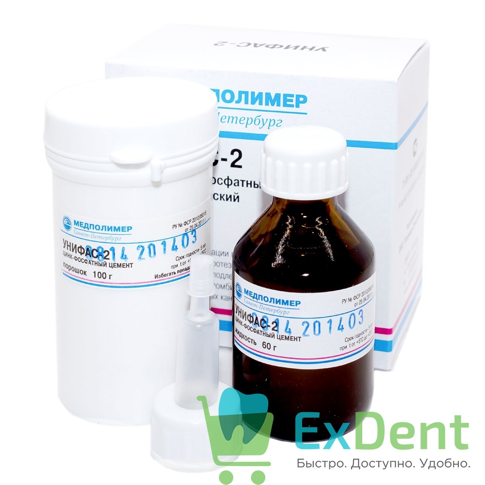 Купить Унифас-2 - цемент цинкфосфатный (100 г + 60 г) произведенный компанией Полимер-Стоматология вы можете в ExDent.ru по цене 300руб.
