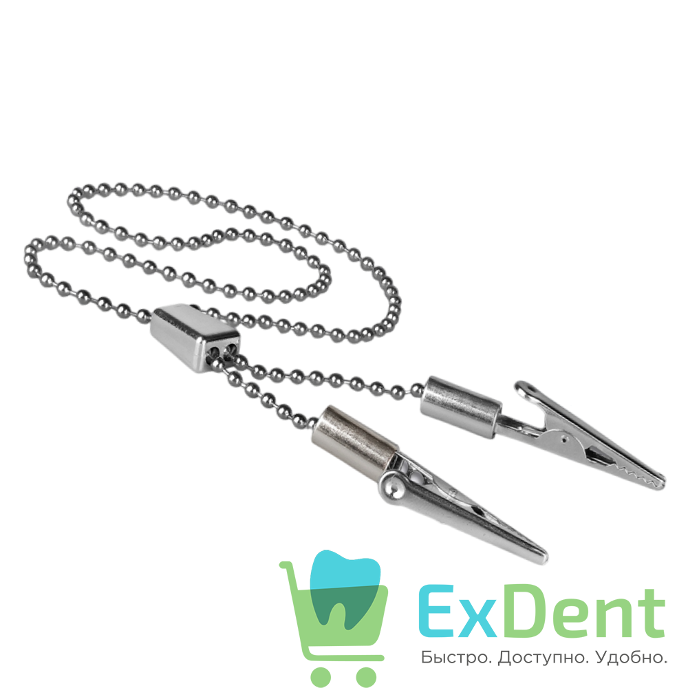 Купить Зажим металический с цепочкой для фиксации салфеток (60 см с регулятором длины) цвет серебро произведенный компанией KRISTIDENT вы можете в ExDent.ru по цене 180руб.