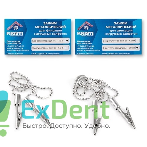 Купить Зажимы металические с цепочкой для фиксации салфеток (42 см), Kristident произведенный компанией вы можете в ExDent.ru по цене 0руб.